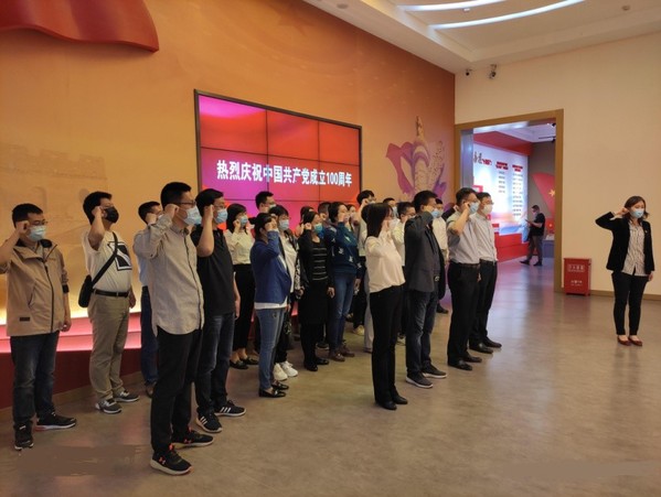 在参观最后,在数学公司党委书记王锐同志的带领下,全体党员郑重举起右手向党旗宣誓,重温入党誓词,不忘初心,牢记使命。