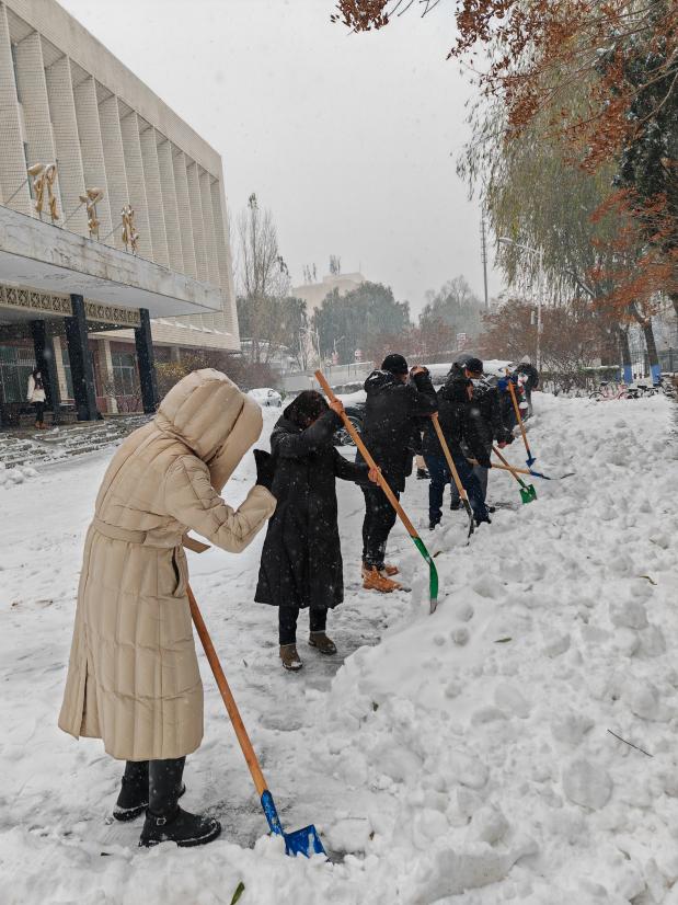 经过2天的清雪工作,理学楼门前积雪已基本清扫到位。美好的校园生活是全体师生共同创建的,整洁的校园环境在给我们带来方便的同时,也传递了一份温暖和力量。此次扫雪活动不仅为公司师生提供了一个安全、干净、舒适的校园生活环境,也体现了师生团结协作和热心服务的可贵精神,展现了公司师生不惧辛苦、埋头苦干的精神面貌。