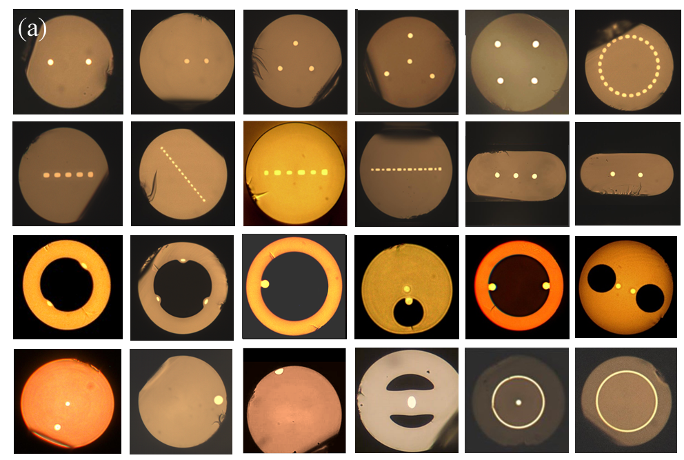 团队提出了一种在光纤内部进行器件与光路集成的新方法,利用独有的组棒或超声打孔技术制备预制棒,研制了数十种具有独立知识产权的多芯微结构光纤,再经过耦合拉锥、激光刻写等技术对其内部或外部的微加工技术,发现同一光纤中多个波导进行组合与互连可以实现纤内光路集成;