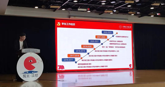 高山学长作为一名待录取博士的研究生,从员工工作的角度,向同学们讲述了他从大一到研二参加各种员工工作的故事,从部员到主席团到支教团,从公司到公司到校外,他不断的奉献着自己的青春和汗水,尽职尽责。同时,他也选取了自己在担任传媒中心主任时,推陈出新,推动短视频进推送及制作雪雕大赛全景互动界面等典型事迹,鼓励同学们在员工工作中提升自我,体现自己的人生价值,尽己所能承担更大的责任,为社会做出更多的贡献。