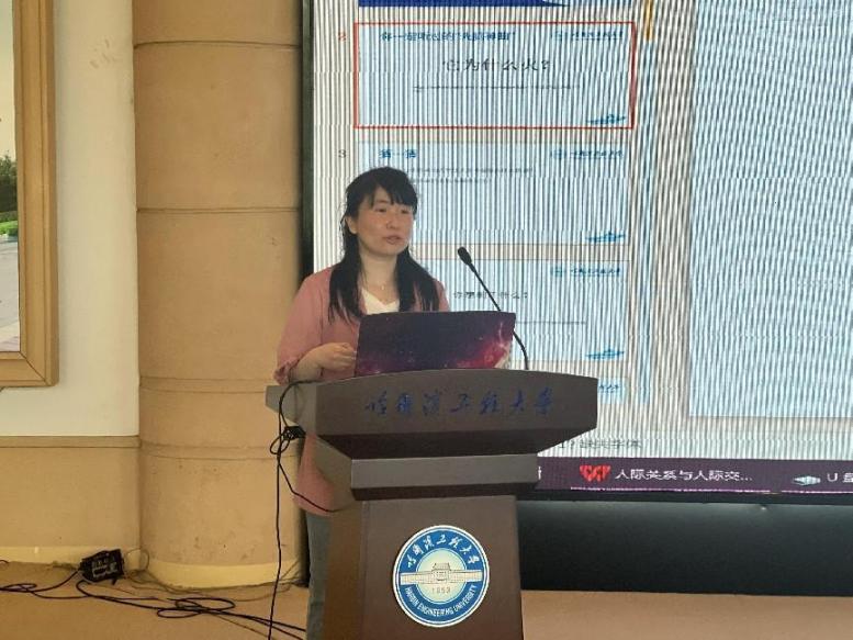 杨柠溪以“人际关系与人际交往”为主题,以老员工心理咨询为切入点,通过播放视频和列举案例等方式介绍构建良好的人际关系和培养人际交往能力的重要性,围绕校园爱情、师生沟通等话题与现场同学进行交流互动,并希望同学们保持热爱,怀揣信仰,勇于寻求心理支持,敢于接受生活挑战。