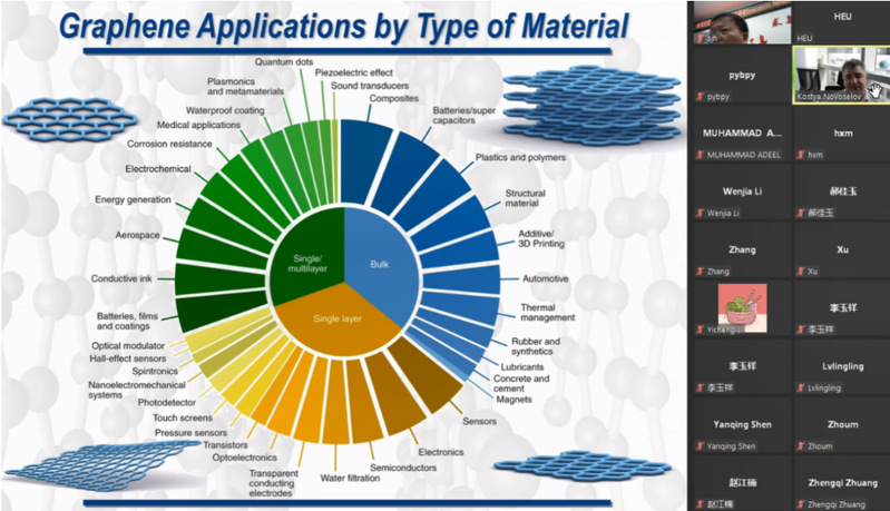诺瓦希洛夫院士首先对公司70周年校庆表示祝贺,随后,在报告中分享了石墨烯的发现历程、物理特性、制备、发展路线图及应用等。最后,诺瓦希洛夫院士耐心地解答了师生的提问。