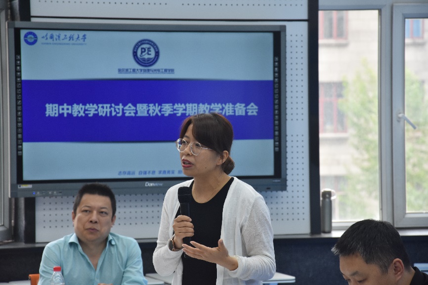 中心副主任姜海丽教授对基础教学研究中心成立以来的阶段性成效、教学工作思路以及举措进行了说明,分享了自己成长的经历,在怎样备课、教学资源选用、课堂节奏把握等方面也提出了指导性的建议,并且鼓励青年教师在教学的同时也应勇于进行教学改革、课程建设等方面积极创新实践。