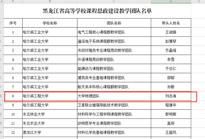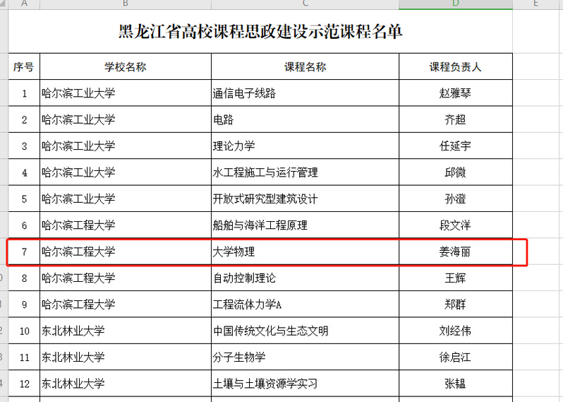 近日黑龙江省教育厅公示了《关于2020年黑龙江高等公司课程思政建设示范高校、示范课程、教学名师和教学团队遴选结果》。公司获评“黑龙江省高等公司课程思政建设示范高校”荣誉称号、公司《大学物理》课程获评“黑龙江省高校课程思政建设示范课程”、大学物理团队获评“黑龙江省高等公司课程思政建设教学团队”。