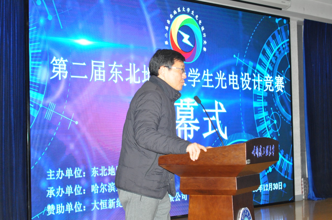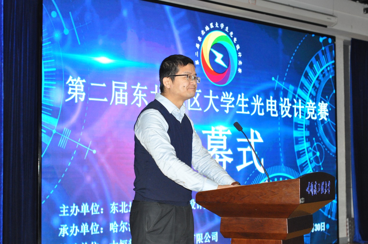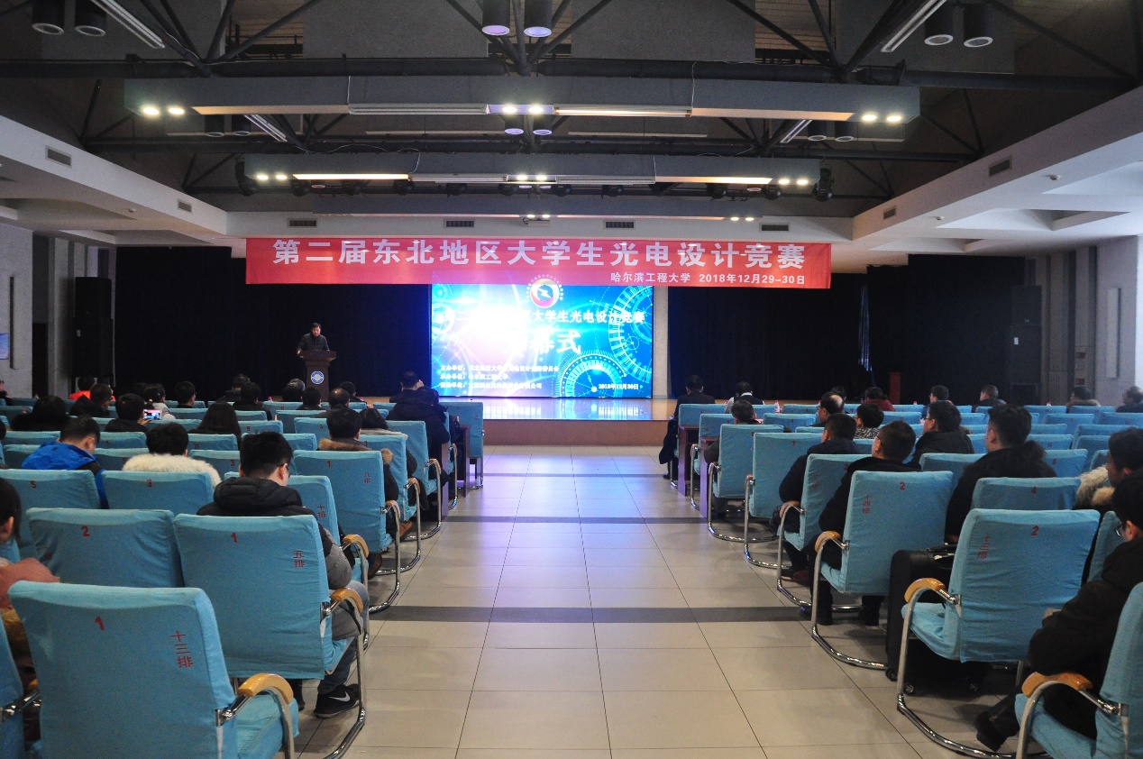 竞赛开幕式于30日在启航活动中心多功能厅举行。黑龙江省教育厅高教处副处长王跃然,教育部光电信息科学与工程专业教学指导分委会秘书长刘向东教授、副主任委员长长春理工大学付跃刚教授,校团委书记史波等领导、嘉宾出席开幕式。